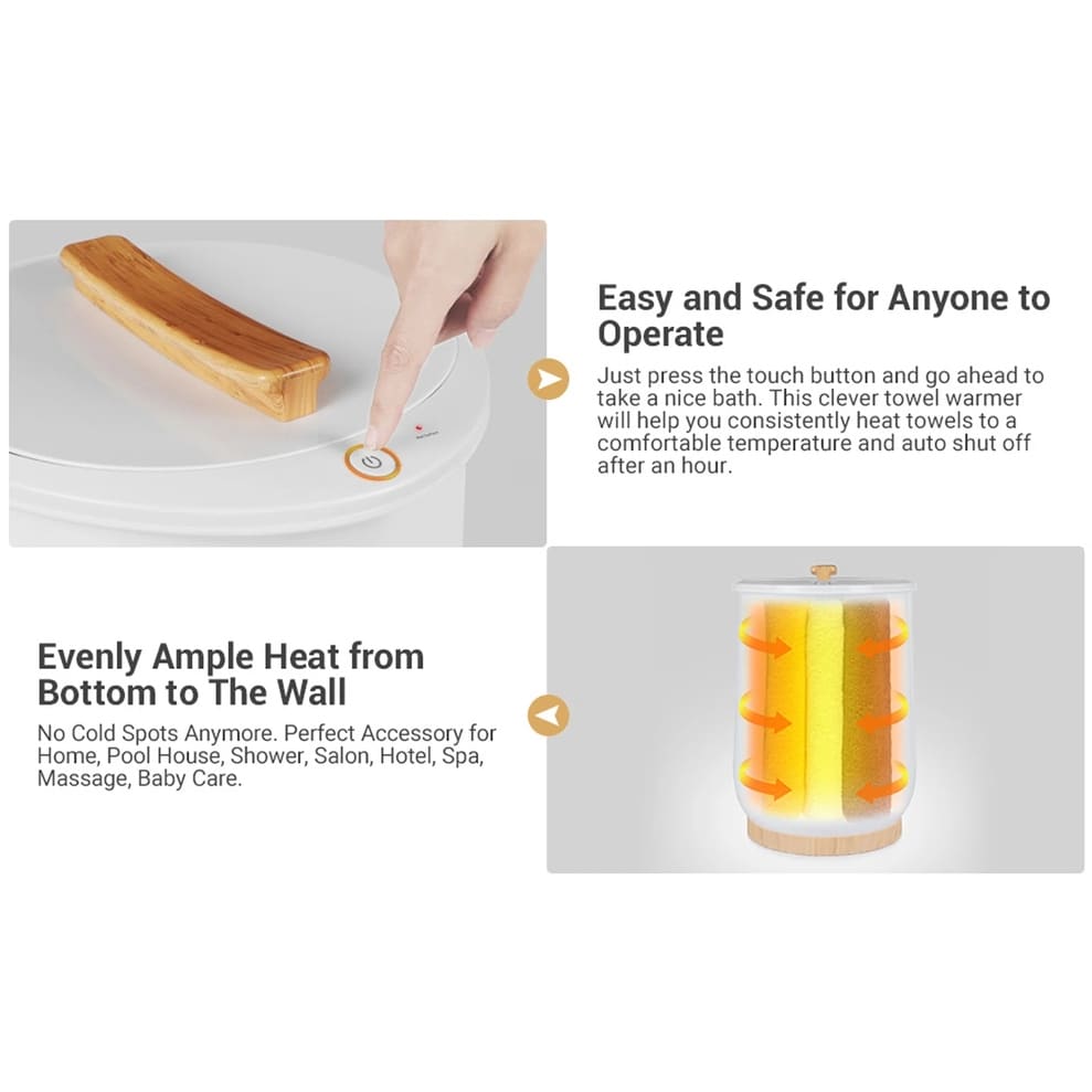 【Chauffage rapide en 1 minute】 Fonctionnement super simple. Il suffit de placer vos serviettes sèches à l'intérieur et d'appuyer sur le bouton tactile avant le bain. Après 1 MINUTE, les serviettes seront rapidement chauffées. Après 6 MINUTES, la température atteindra 122℉ (environ 50°C) et continuera à monter jusqu'à environ 266℉ (environ 130°C), tout en maintenant la chaleur pendant une heure. Ce chauffe-serviettes s'éteint automatiquement après une heure pour des raisons de sécurité. Après le bain, vous pourrez utiliser immédiatement la serviette chaude, en profitant d'une expérience spa confortable à domicile !