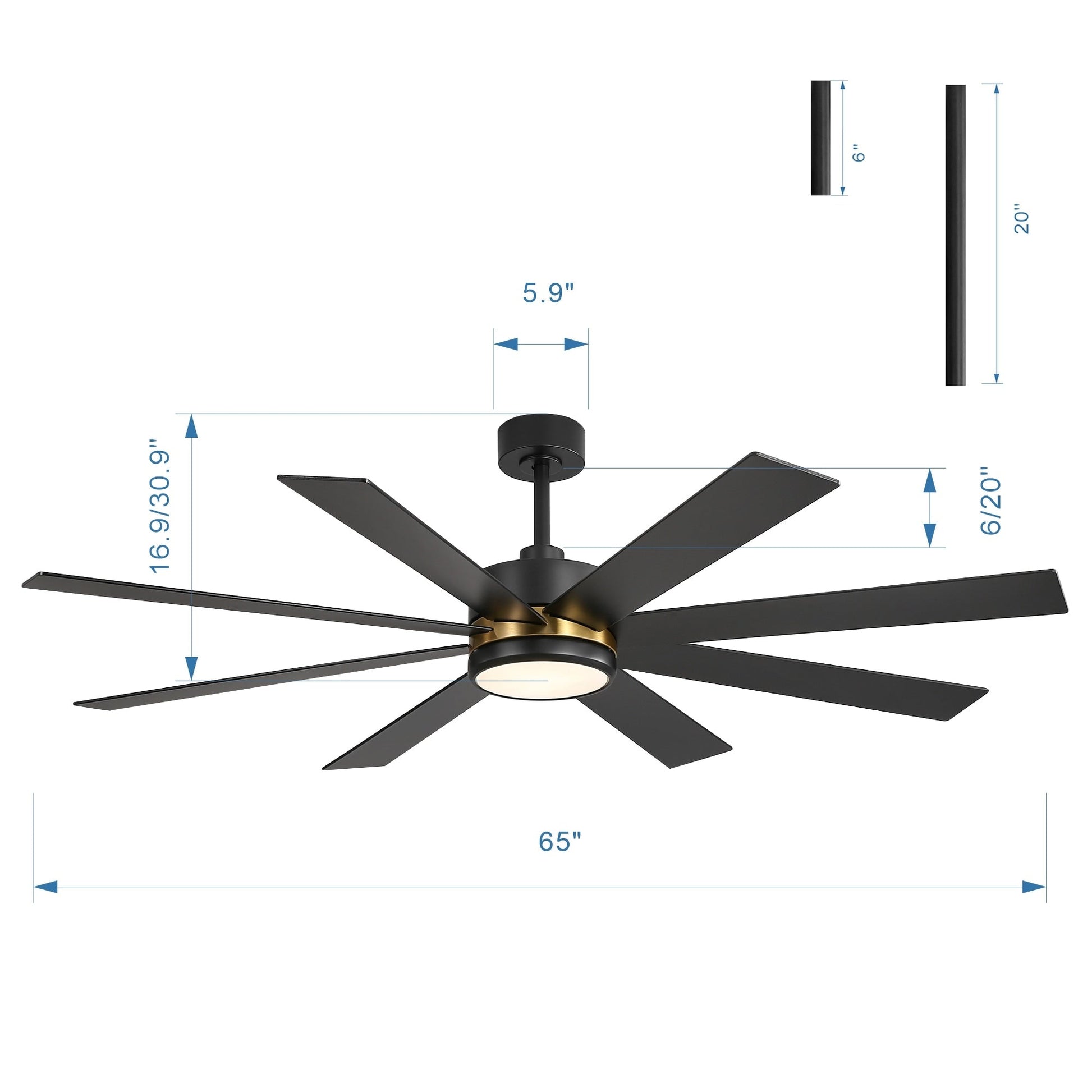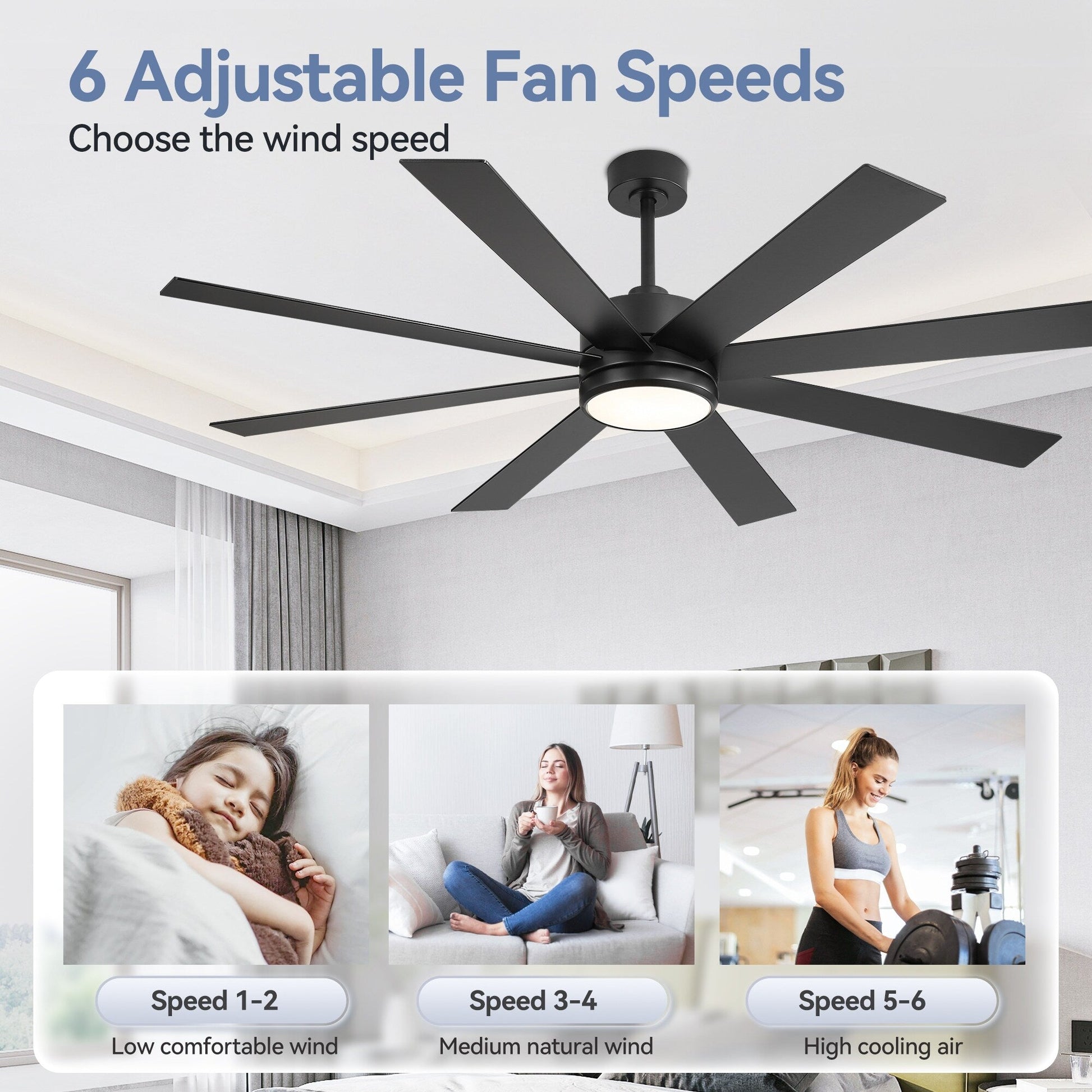 Ventilateur de plafond à LED noir à 8...