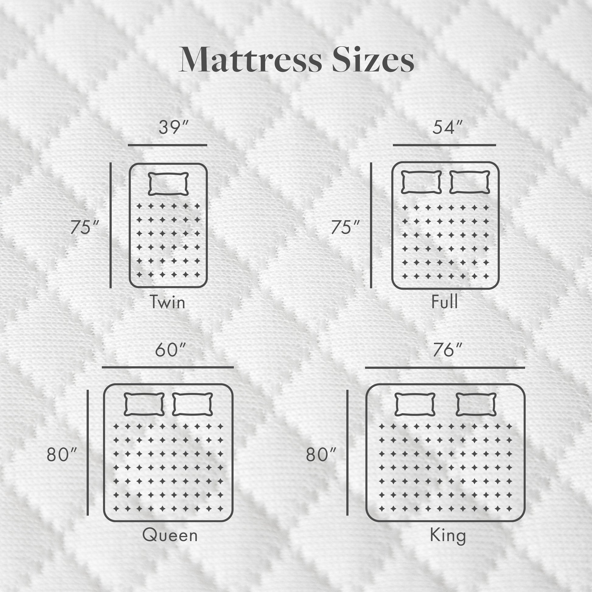 Options de taille de matelas : simple, double, queen ou king.