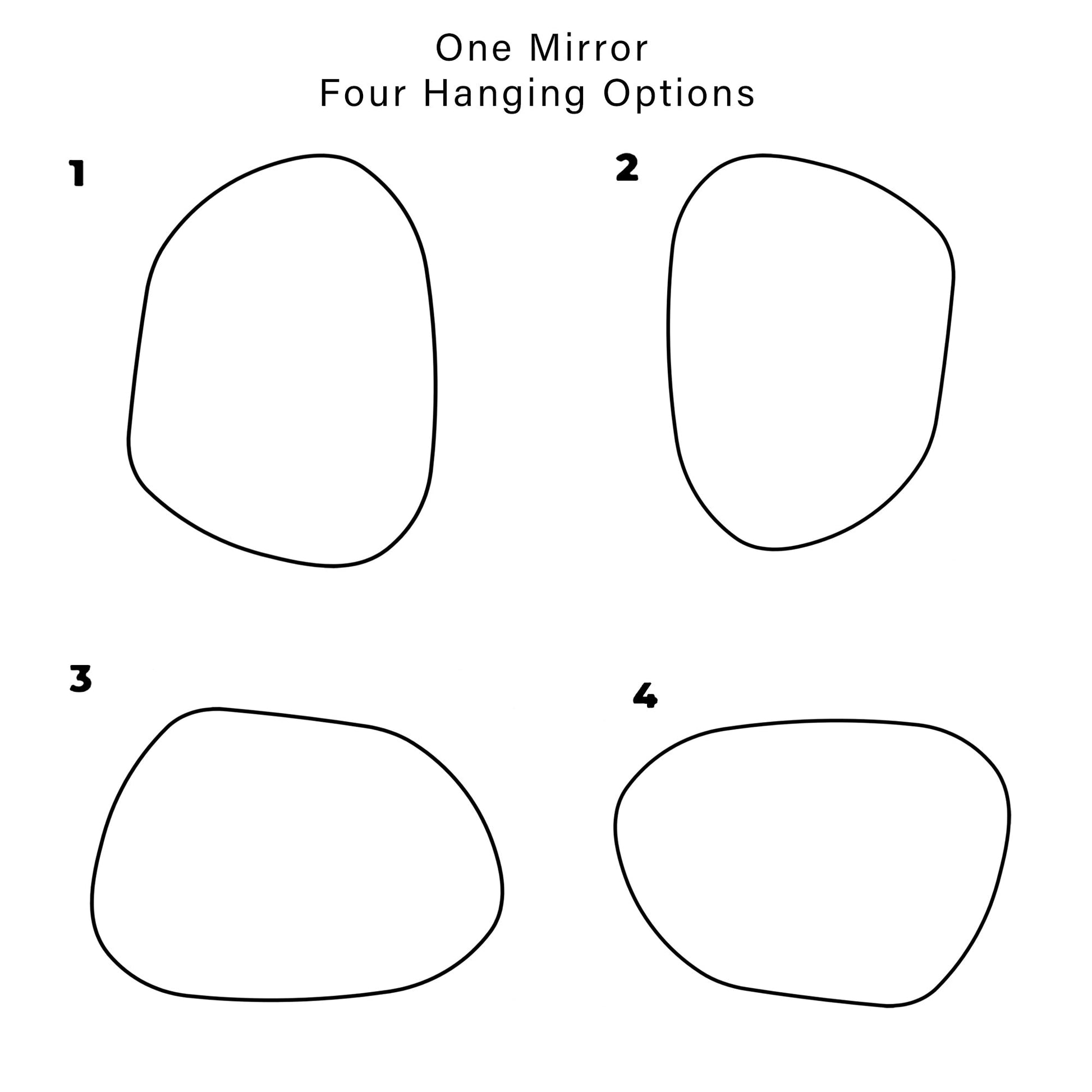 • Multiple Hanging Options: Cleverly designed  with total 4 hanging options. Thanks to the irregular shape of this  mirror, you can always create your own look and statement based on your  own mood.