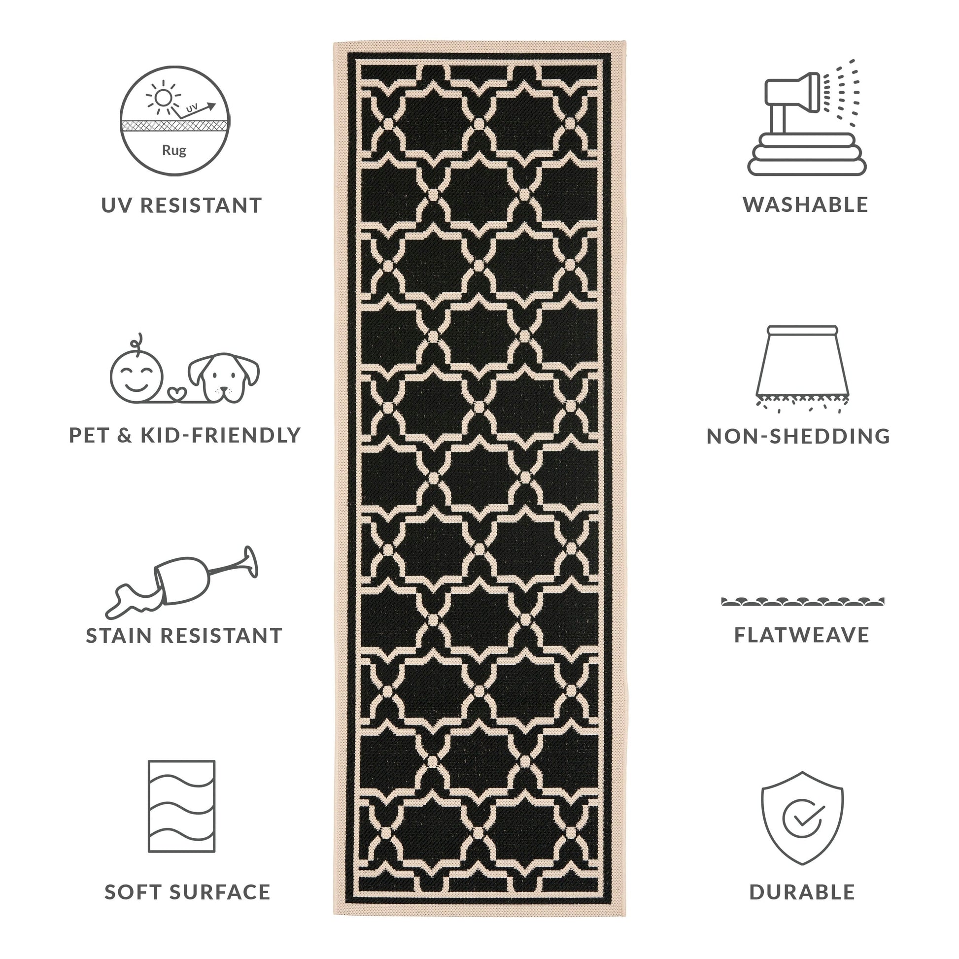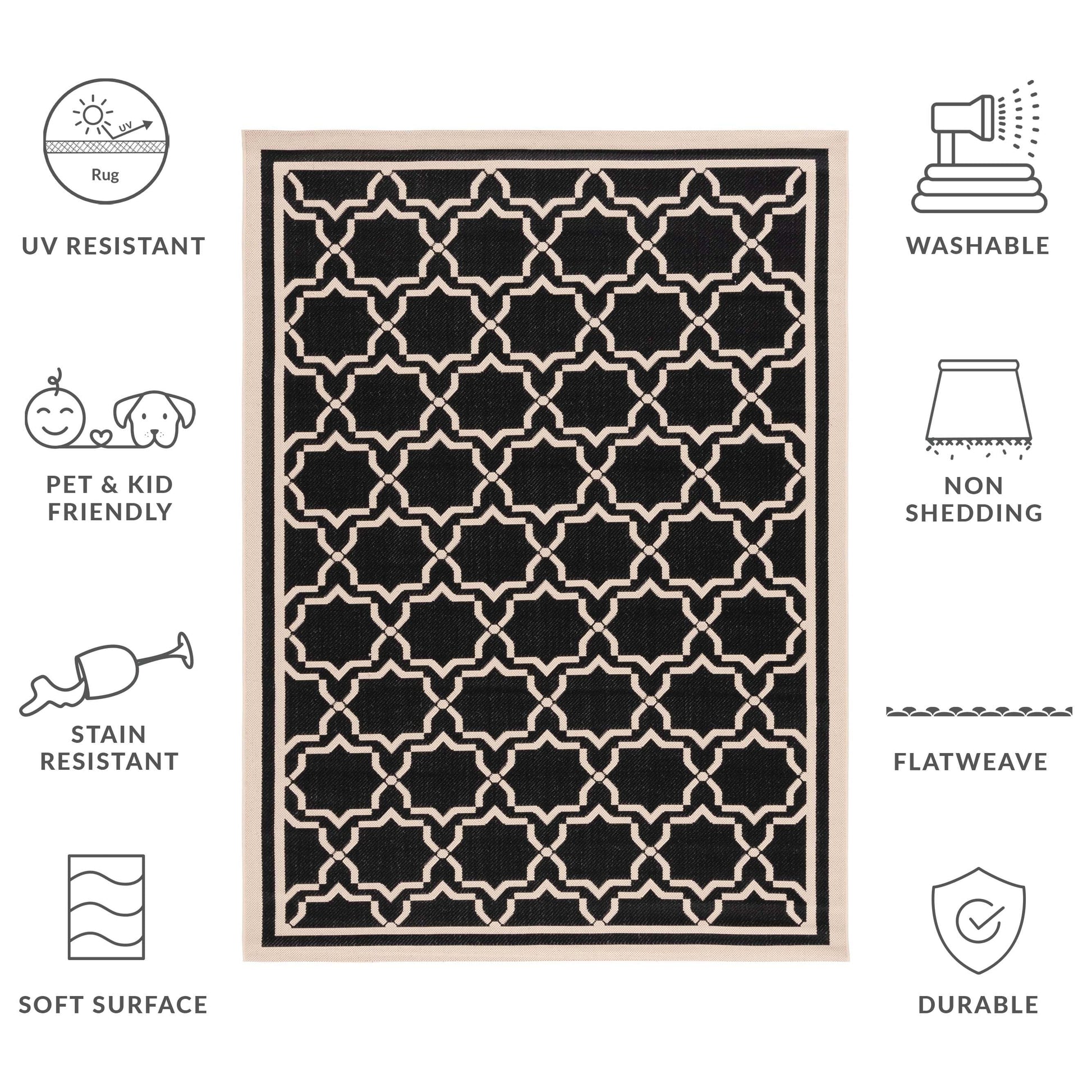 Perfect for any backyard, patio, deck, sunroom, veranda, or poolside, this stylish rug from the Courtyard Collection is a practical addition to any outdoor or indoor living space. Conveniently pet and kid-friendly, this easy-care rug is also well-suited for high-traffic areas including the mudroom or kitchen. This beautiful rug collection takes outdoor decorating to the next level with new designs in fashion-forward colors, and patterns from classic to contemporary.