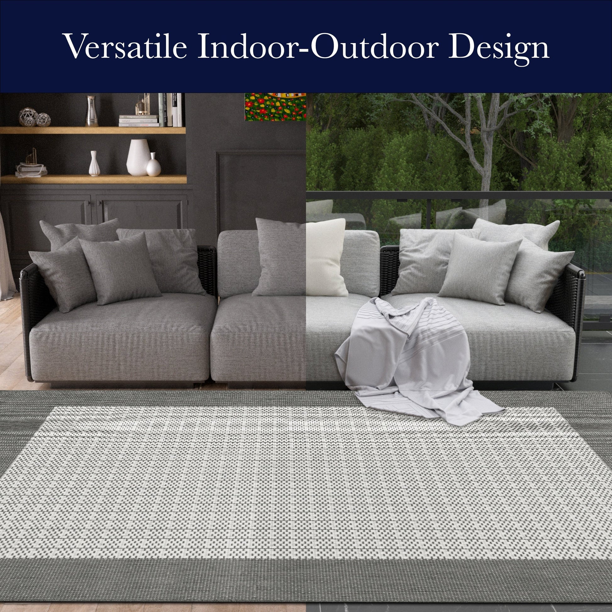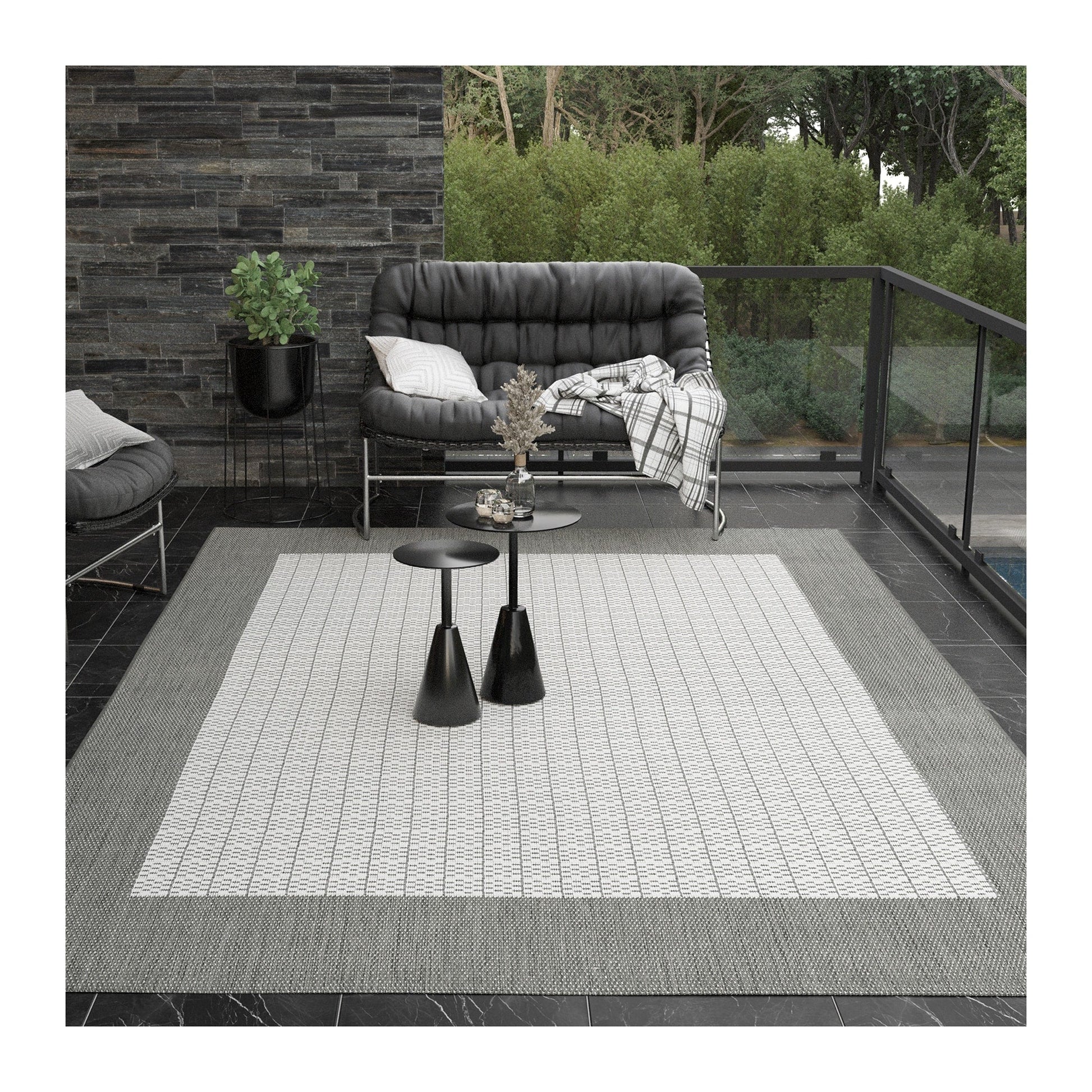 Elevate the look of your outdoor and indoor space with the Pergola Quad Indoor/ Outdoor Area Rug. This indoor/ outdoor rug is crafted from 100% fiber-enhanced Courtron polypropylene and has a structured, flatwoven construction that provides superior comfort and style. Perfect for all types of weather, this rug is UV resistant, mold and mildew resistant, and water and stain resistant. This rug is incredibly stylish and functional, perfect for patios, decks, and other outdoor areas. It is pet and kid friendly and comes with a 1-year limited warranty for added peace of mind. Plus, it is incredibly easy to clean - just sweep or hose off for the perfect maintenance for a busy household. Hosting a wide range of sizes including runners and special shapes in the form of rounds and squares, add this rug to any room and watch it transform the space into something special.