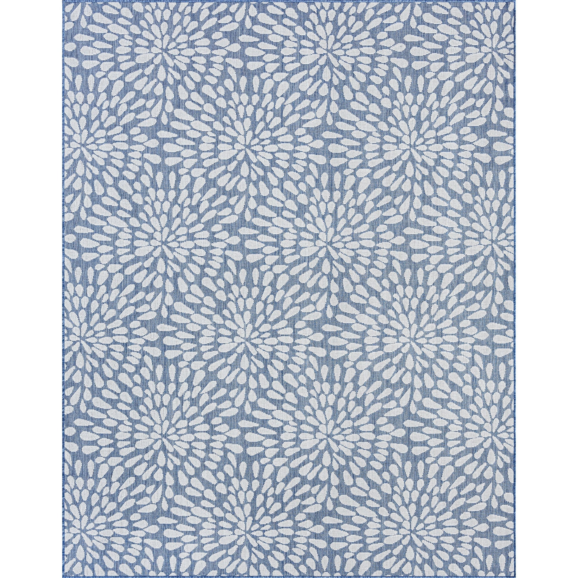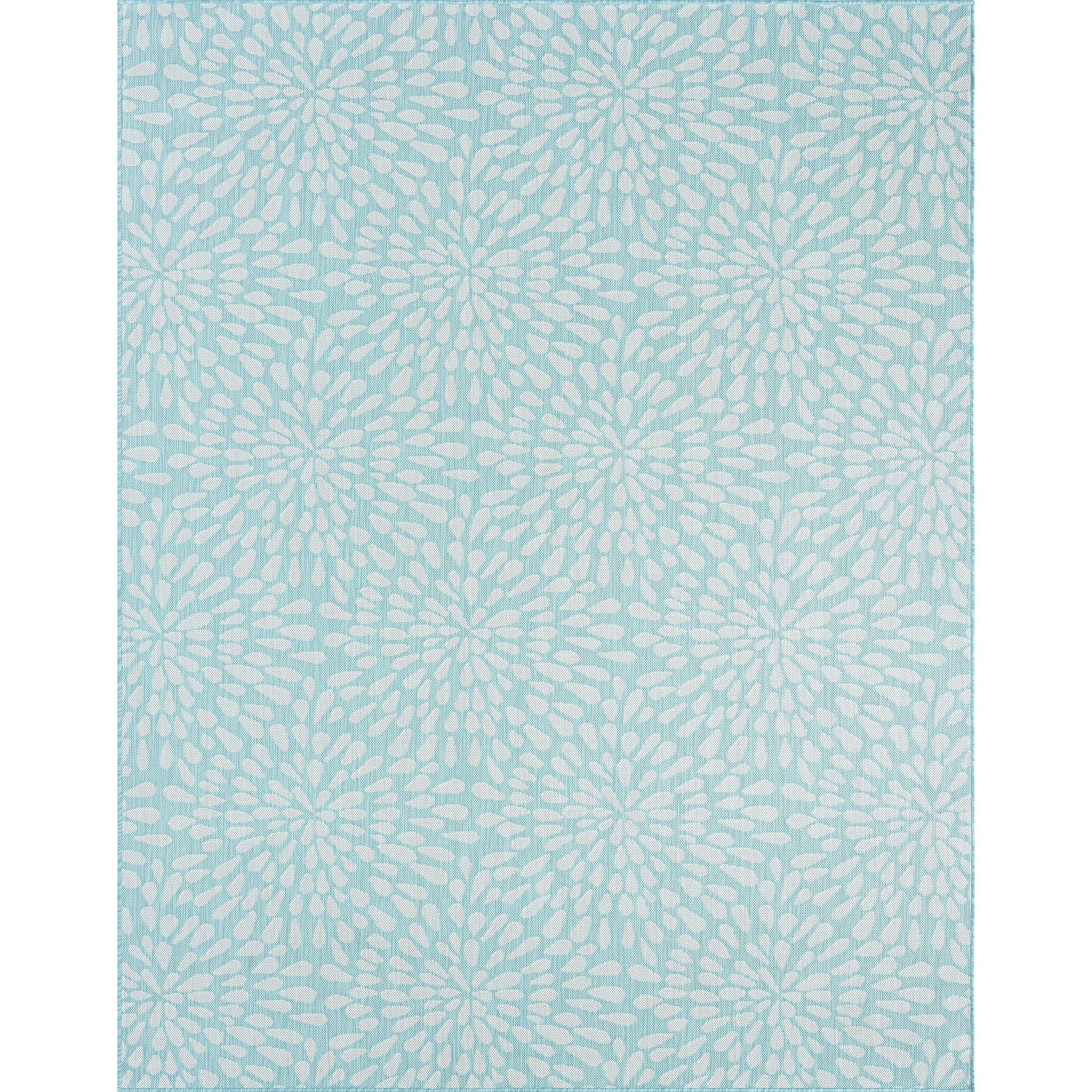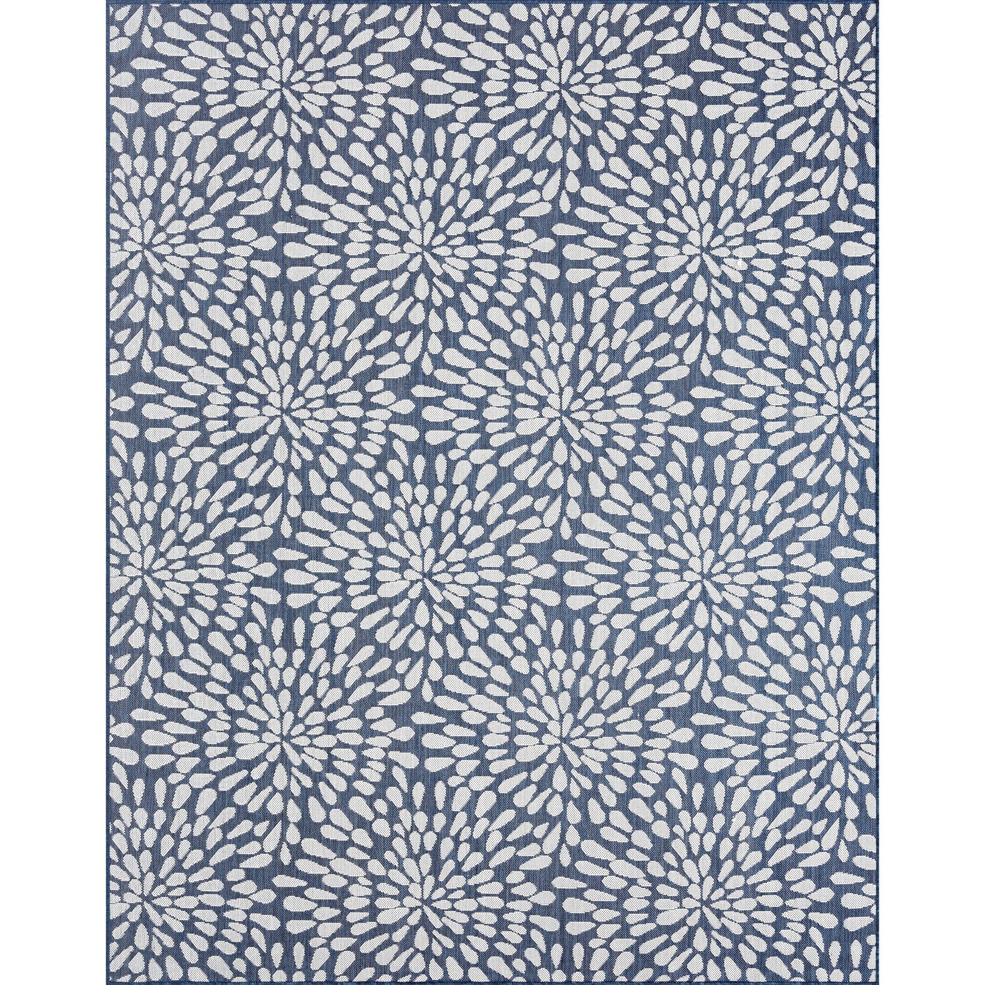 Transform your indoor or outdoor living space with this stunning Exo Coastal Floral Indoor/Outdoor Area Rug. Its transitional floral pattern adds a touch of elegance to any room or area, while its treated fibers resist stains and fading, ensuring long-lasting quality. Whether it's for a family room, sunroom, porch, deck, den, living room, playroom, or nursery, this rug is a great addition. It's easy to clean with mild detergent and a garden hose, giving you peace of mind. Bring joy to your family gatherings with this fun design that sparkles like fireworks.