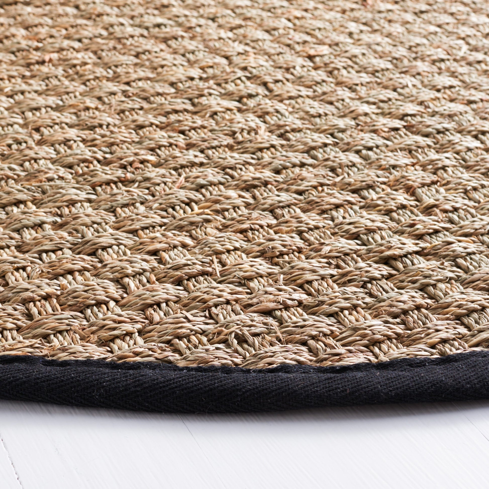 Decorate your home with this basketweave seagrass rug. This rug boasts a casual style and has a chic border pattern. Machine-woven from sturdy seagrass fibers, this rug has a felt dotted backing to help keep the rug from shifting in high-traffic areas.