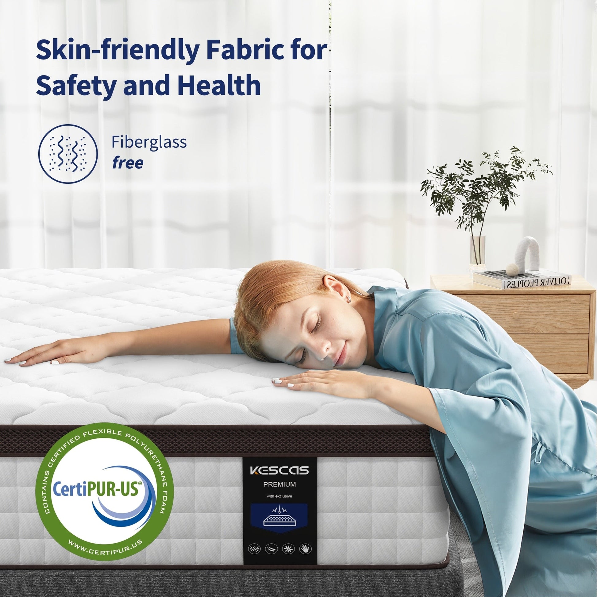 • Mousse certifiée CertiPUR-US® - Trois couches de mousse de qualité supérieure pour plus de durabilité et de confort, soulageant les points de pression et soutenant un alignement correct de la colonne vertébrale.