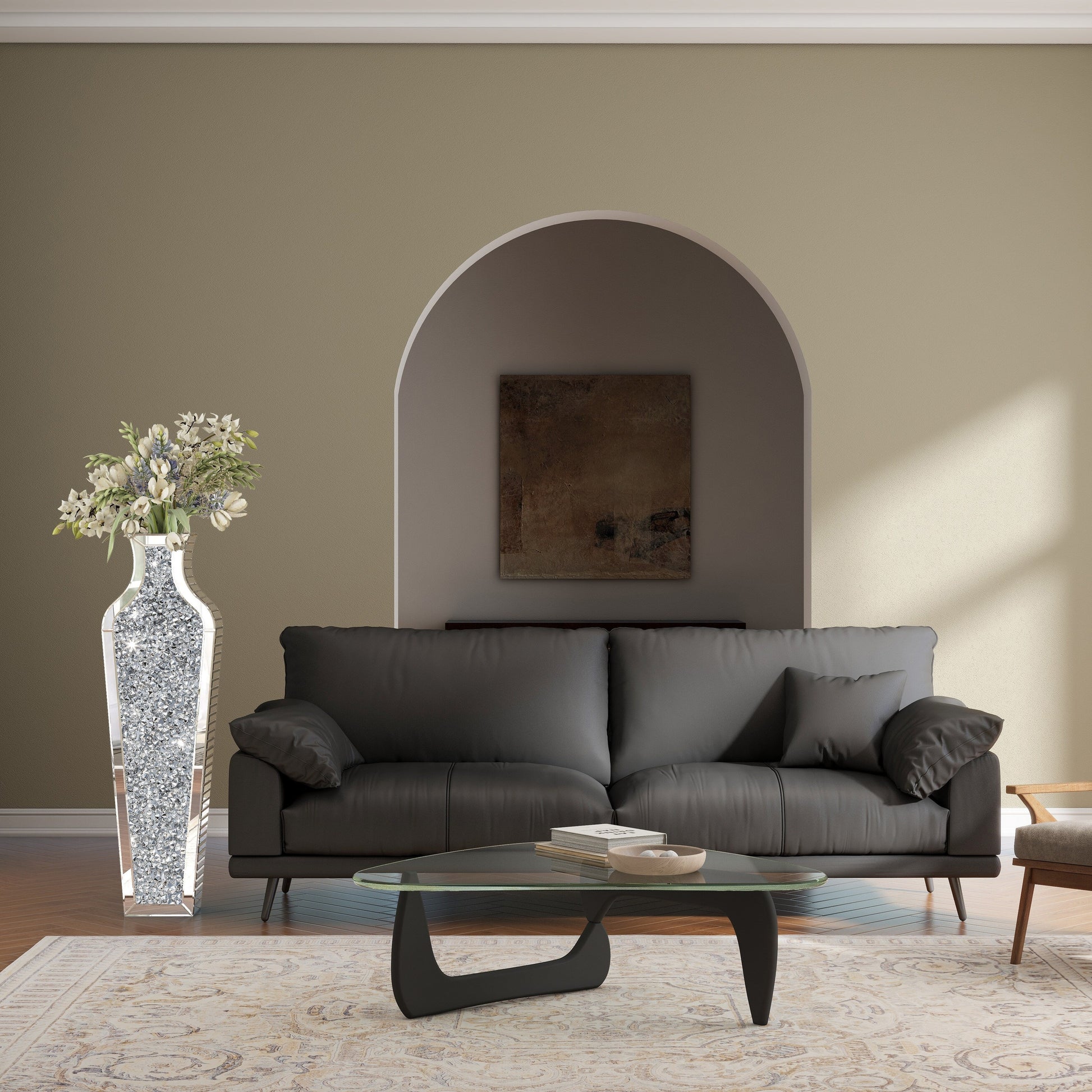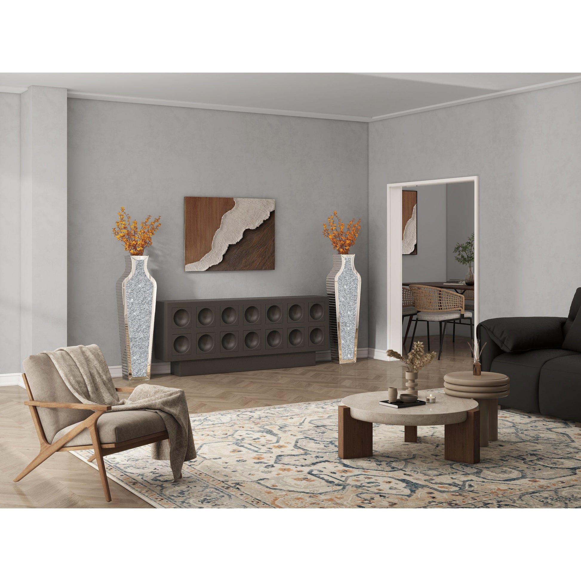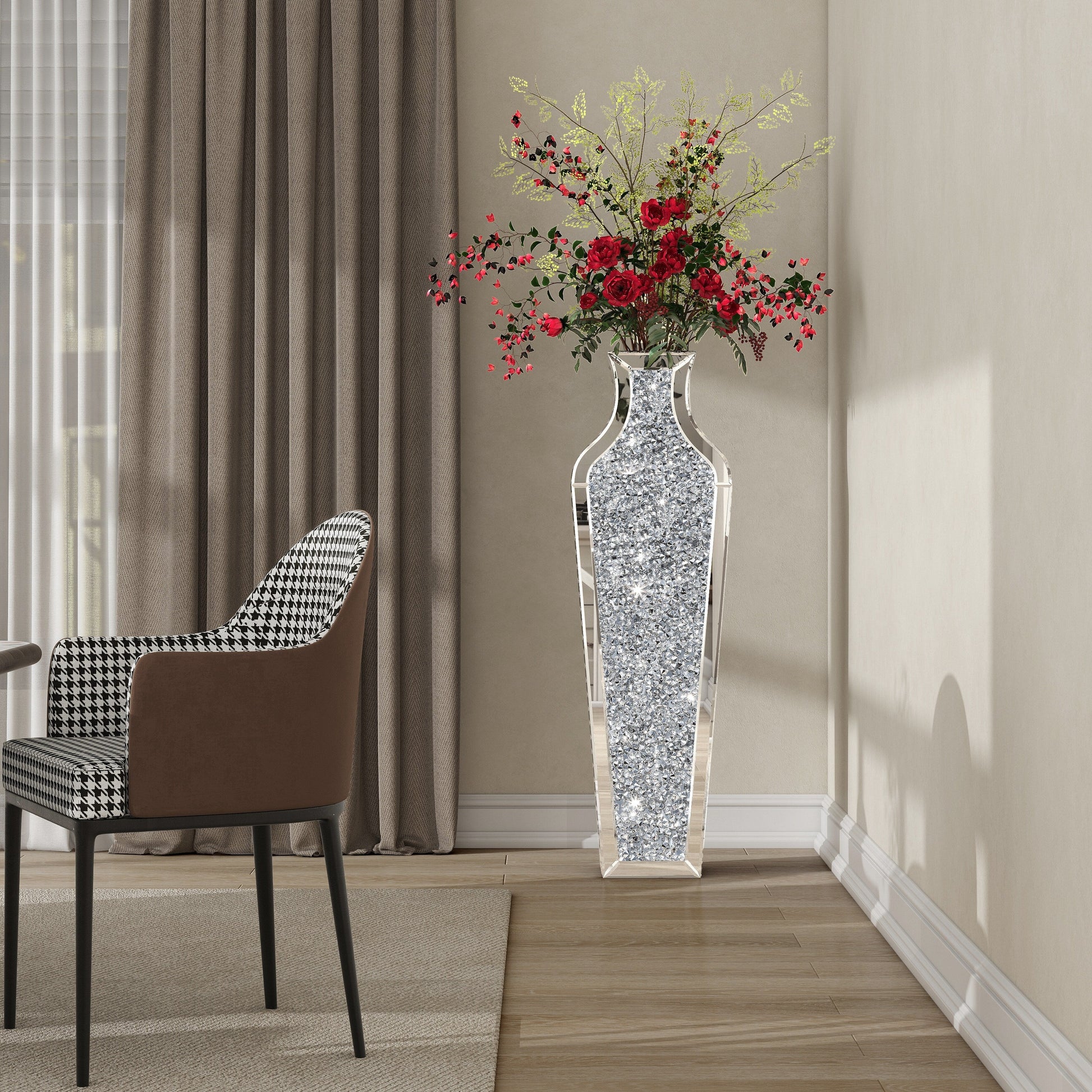 Grand vase de sol en verre concassé et...